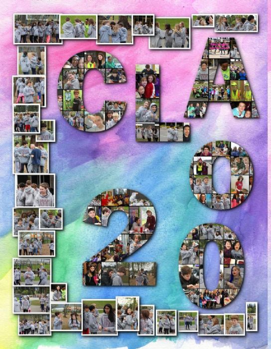 Entry Description: In our yearbook I wanted the graduating 5th graders to have a special section in the yearbook and I wanted a special way to introduce that section. I was really wanting to do a numerical and alphabetical template that allowed photos to be placed inside the template. I was trying to find a creative way to display collage photos without randomly just placing them on the page. Most of these photos are of the kids signing each other's 5th grade sweatshirts that our 4 elementary schools give the 5th graders. I wanted to display that special time in a creative and different way.