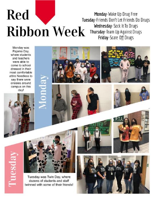 Entry Description: For this page, we wanted this to be fun and show off our school spirit in the midst of a pandemic year. We also wanted to stray away from the normal blue and green color tones that we normally use throughout our book.