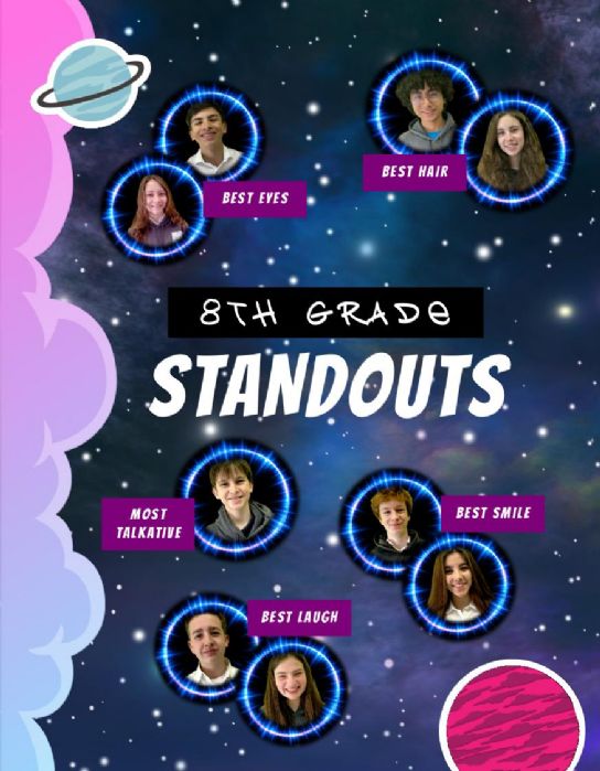 Entry Description: Building on our 3... 2... 1... Blast Off! theme, we showcased our 8th Grade Standouts as sparkling satellites in the sky.